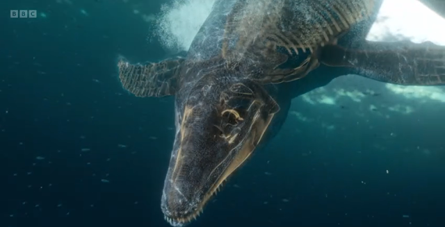 In between the dig portions cuts to Attenborough on a boat, where a CG Pliosaurus in the modern dsy swims by as David talks about the basics of it. It's a very beutiful scene, even if it's brief compared to the rest of the documentary.